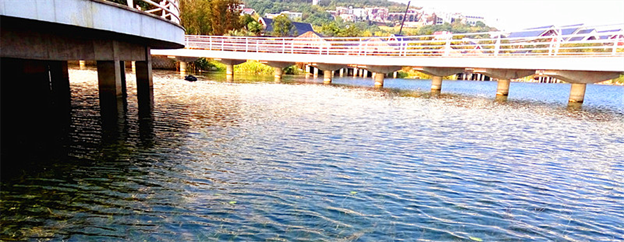 南北水塘水生態修復示范項目由南京中科水治理股份有限公司進行設計施工一體化工程,工程總面積22.8萬㎡,平均水深2.2m。南北水塘在修復前為典型的富營養化水體,清水型生態系統構建技術工程施工后,主要水質將達到地表水環境治理標準GB3838-2002 Ⅳ類以上,透明度達到1.5m及以上,且每年不少于300日。