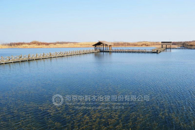 溱湖國家濕地公園內的溱湖風景區是國家5A級旅游景區和經江蘇省人民政府批準的省級風景名勝區,是由國家林業局批準設立的全國第二家、江蘇省首家國家級濕地公園。溱湖生態構建示范區水面面積約8萬㎡,平均水深1.5m,生態構建之前水體透明度僅為25cm。我司通過人工干預,打破水體濁水穩定態,水生植被覆蓋率70%左右,水體平均透明度達到1.5m,清澈見底,形成穩定的良性生態系統??⒐ぶ两瘢鷳B系統一直保持穩定,水質指標達到《地表水環境質量標準》(GB3838-2002)Ⅰ類水標準。