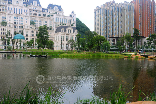 南京中科水治理股份有限公司于2013年12月10日開始,對景觀湖進行清水型生態系統構建工程,實施的主要內容有:水體透明度提升、挺水植物、沉水植物群落構建,魚類、大型底棲動物群落構建,水質指標監測,及養護管理。2014年2月17日,清水型生態系統構建工程較計劃提前1個月完工并通過驗收。至今,主要水質指標仍達到《國家地表水環境質量標準》GB3838-2002Ⅱ類水標準,超過合同規定的 Ⅳ類水要求,水質清澈見底,水生動植物多樣性提高,有效抑制了水體富營養化趨勢。