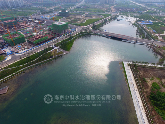 新川之心中央公園包括西區(qū)和東區(qū),西部湖區(qū)總面積約為95000m2,分為東西兩片水域,其中東湖水面面積約為60000 m2,西湖水面面積為35000 m2,常水位時平均水深約2m。由南京中科水治理股份有限公司對湖區(qū)進行生態(tài)系統(tǒng)的構(gòu)建。