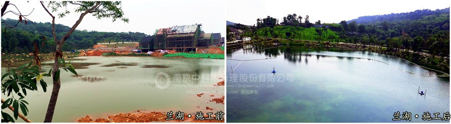 南京中科水治理股份有限公司建設的蘭湖、芳池屬于青秀山蘭園水生態環境修復海綿城市示范點,目前蘭湖和芳池水生態系統已經構建完畢,進入優化調整階段。