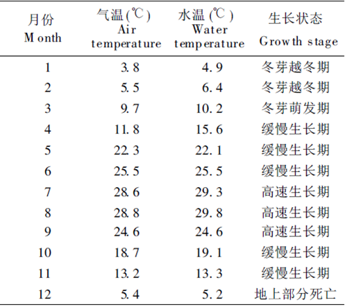 苦草是多年生草本。分布在亞熱帶地區(qū)的苦草( V. natans )冬季地上部分死亡,以冬芽或種子越冬,春季從冬芽或種子開始萌發(fā),且隨氣溫上升開始緩慢生長,夏季為快速生長期,最大生物量一般在9月份出現(xiàn)。開花期是5~ 8月,結(jié)果期為8~10月,種子成熟期在12月左右。