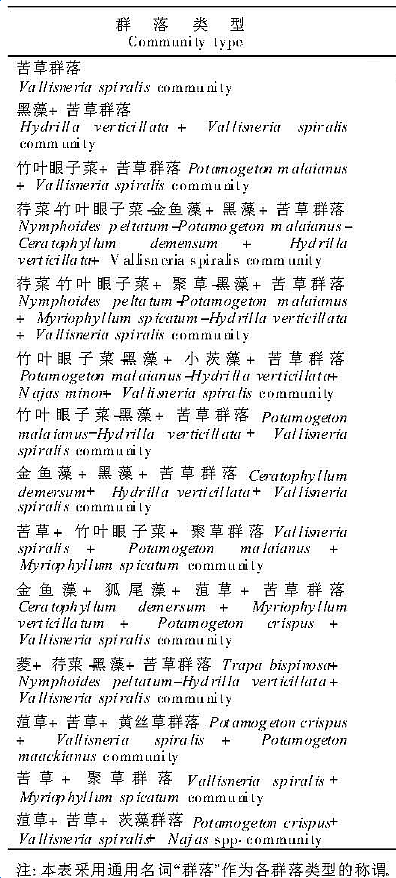 目前研究中涉及的不同群落僅僅是具體的地方群落( Local community) ,而并非群落分類學(xué)意義上的群落類型。根據(jù)近年來的研究,我們認(rèn)為層片( synusia )途徑是一個比較理想、實用的水生植物群落分類標(biāo)準(zhǔn)。利用層片分類系統(tǒng),有可能對調(diào)查涉及的每一群落作出細(xì)致的分析。