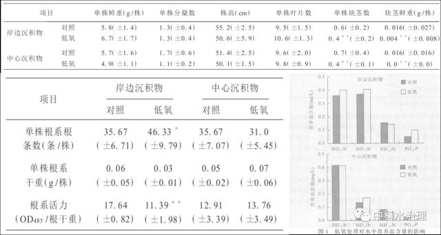 2、低氧對苦草根系的影響顯著,表現(xiàn)為根須變細(xì)且數(shù)量增加,根系活力明顯下降。