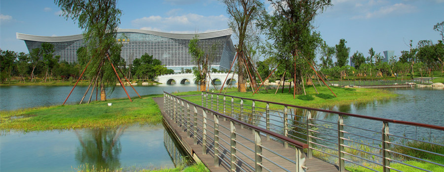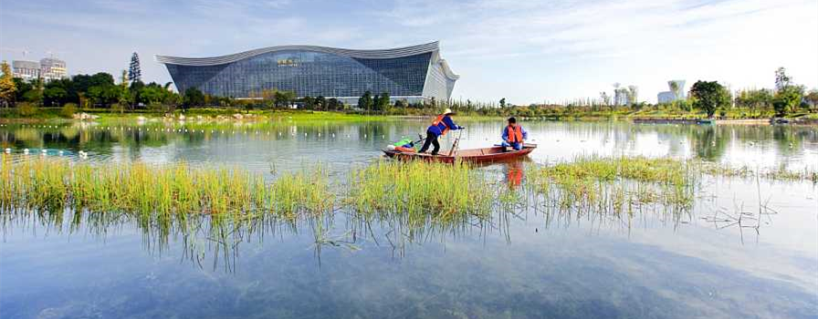 錦城湖3#、4#湖生態(tài)系統(tǒng)構(gòu)建工程自2013年3月25日開工至5月底主要施工任務(wù)完成。水體透明度達(dá)到2米,部分區(qū)域清澈見底,從6月1日開始,工程進(jìn)入優(yōu)化調(diào)整階段。2014年4月通過(guò)竣工驗(yàn)收,錦城湖工程(3#、4#湖)清水型生態(tài)系統(tǒng)構(gòu)建完工后,水體清澈,水質(zhì)優(yōu)于《地表水環(huán)境質(zhì)量標(biāo)準(zhǔn)》GB3838-2002 Ⅳ類(TP<0.1mg/L,TN<0.5mg/L),水體生物多樣性高,沉水植物覆蓋度達(dá)到60%以上,有效抑制了水體富營(yíng)養(yǎng)化趨勢(shì),水體透明度達(dá)到2m,部分地區(qū)清澈見底,水體景觀性好。
