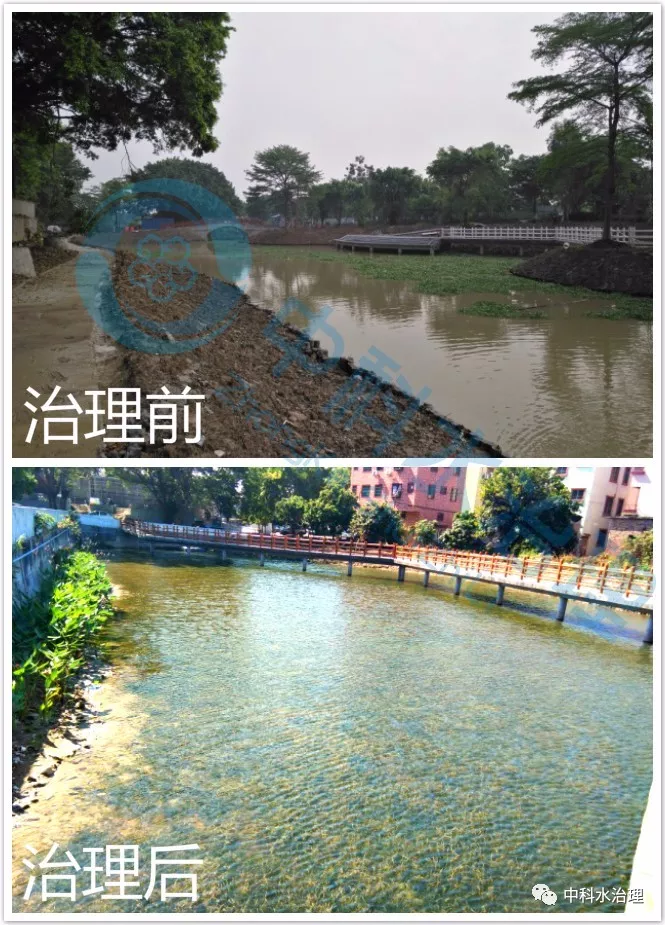 項(xiàng)目完成后,水質(zhì)由原先的劣Ⅴ類提升至Ⅲ類-Ⅳ類,觀感清澈,水下植物群落清晰可見(jiàn),清澈見(jiàn)底。
